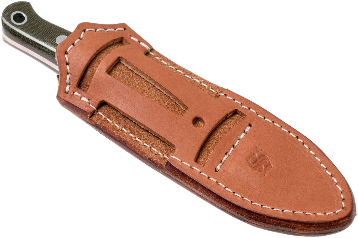 Bark River Bravo 1 A2 FHG Rampless, Black Linen Micarta, Funda Marrón